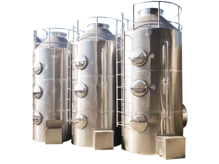 工作原理 廢氣經(jīng)由填充式酸霧洗滌塔,采用氣液逆流吸收方式處理,即液體自塔頂向下以霧狀或小液滴噴灑而下;廢氣則由塔體逆流向達到氣液接觸的目的。此處理方式可冷卻廢氣、調(diào)理氣體及去除顆粒,再經(jīng)除霧段處理后,可排放到大氣中。 產(chǎn)品特點